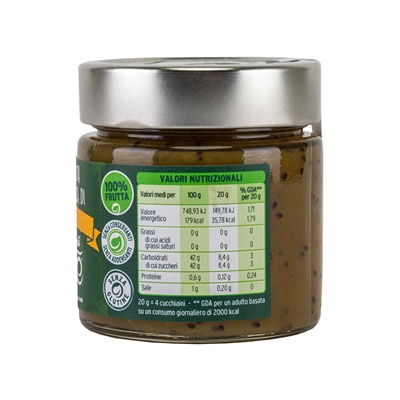 Ingredienti: kiwi biologico, zucchero d'uva biologico (senza uso di addensanti e conservanti)